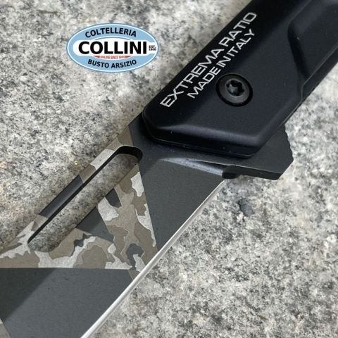 Ferrum T è un coltello chiudibile di chiara connotazione tattica dotato di lama spear point con asola di alleggerimento. Ha una forma sottile e compatta, le due guancette in alluminio anticorodal anodizzato compongono una manicatura leggera, slanciata ed allo stesso tempo molto resistente. Può essere alloggiato in un taschino, in piccole fondine per torce o all’interno di un singolo passante del sistema M.O.L.L.E.Dotato di sistema di apertura assistita flipper, la lama ruota su cuscinetti a sfere che permettono un movimento della lama fluido e privo d’incertezze. Questo meccanismo permette all’utilizzatore un’apertura rapida ed agevole della lama, anche con una sola mano. Il sistema di blocco adottato è l’ormai collaudato liner lock. La clip reversibile è posizionata posteriormente. Destinazione d'uso: Tattico / EDCTipo di produzione: IndustrialePaese di produzione: ItaliaLama: in acciaio inox N690Co 58HRCFinitura lama: Black WarfareManicatura: AnticorodalLunghezza lama: 73mm.Spe