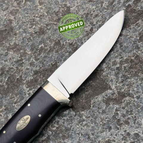 COLTELLO RITIRATO DA COLLEZIONE PRIVATA* Provenienza: Ritirato da un privato, precedentemente acquistato* Condizioni: Globalmente in ottime condizioni* Reperibile in commercio: Fuori produzione* Affilatura: Di fabbrica* Segni su lama: Qualche impercettibile segno dovuto dal tempo* Segni su impugnatura: Nessuno* Scatola: Presente* Fodero: Presente, con qualche piccolo segno dovuto dal tempo* Manuali, Certificati e Garanzie: /* Controllato e Certificato dal nostro laboratorio interno Destinazione d'uso: Caccia / SportivoTipo di produzione: IndustrialePaese di produzione: GiapponeLama: full tang In acciaio inox laminato 3G (SGPS) 62HRCFinitura Lama: SatinaturaManicatura: Micarta MarroneLunghezza lama: 90mm.Spessore lama: 4.5mm.Lunghezza totale: 195mm.Peso: 180g.Fodero: Cuoio MarroneConfezione: Scatola di cartone con loghi FallknivenNote: coltello precedentemente acquistato, proveniente da una collezione privata