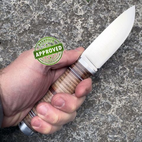COLTELLO RITIRATO DA COLLEZIONE PRIVATA* Provenienza: Ritirato da un privato, precedentemente acquistato* Condizioni: Globalmente in ottime condizioni* Reperibile in commercio: Ancora in produzione* Affilatura: Di fabbrica* Segni su lama: /* Segni su impugnatura: /* Scatola: /* Fodero: in ottime condizioni* Manuali, Certificati e Garanzie: /* Controllato e Certificato dal nostro laboratorio interno Idun è una divinità della mitologia norrena, conosciuta come la custode delle mele dell'eterna giovinezza. Queste mele magiche garantiscono l'immortalità agli dei che le mangiano, mantenendoli sempre giovani e vitali. Idun svolge un ruolo cruciale nel pantheon norreno, poiché senza le sue mele gli dei inizierebbero a invecchiare. Un mito famoso racconta di come Loki la rapì su ordine del gigante Thjazi, causando un rapido invecchiamento degli dei fino alla sua liberazione. Il suo legame con la giovinezza e la vitalità la rende una figura centrale nelle storie della mitologia norrena. Destina