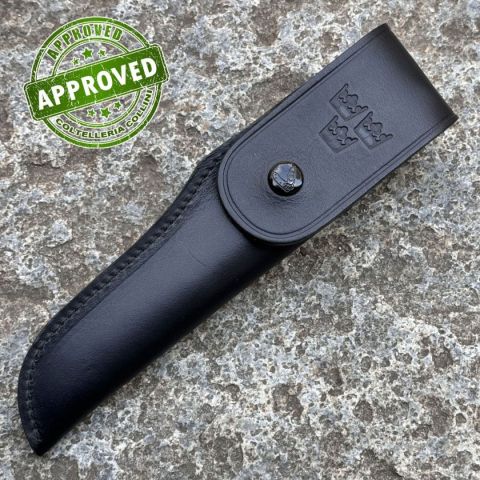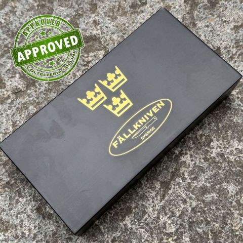 COLTELLO RITIRATO DA COLLEZIONE PRIVATA* Tipologia: Precedentemente Acquistato* Condizioni: in buone condizioni* Reperibile in commercio: Ancora a catalogo* Affilatura: Originale, migliorabile* Segni su lama: Piccoli segni di usura* Segni su impugnatura: Piccoli segni di usura* Confezione: Completa* Fodero: Presente, con minimi segni di usura* Manuali, Certificati e Garanzie: -* Controllato e Certificato dal nostro laboratorio interno Fallkniven Tre Kronor TK1La linea "Tre Kronor" fonde le più moderne tecnologie martensitiche con le antiche radici della famiglia reale svedese. Questi coltelli, infatti, sono gli unici a potersi fregiare del simbolo reale delle tre corone poste sulla lama e sulla splendida confezione in legno che contiene il coltello ed il fodero.L'acciaio laminato utilizzato è attualmente uno dei migliori acciai industriali in commercio ed è composto da una lamina interna in SGPS da polvere, acciaio già utilizzato per il modello U2, a 62HRC accopiato a due gua