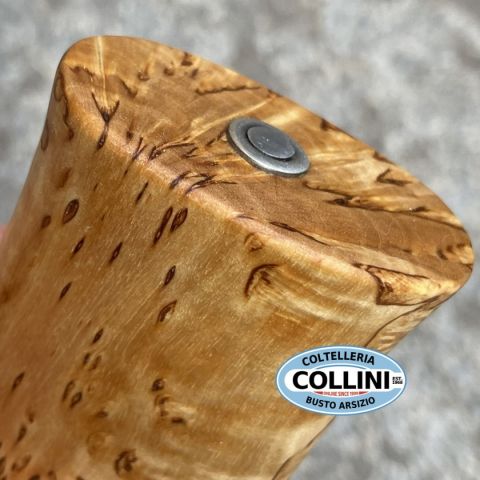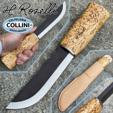 Con un peso inferiore e dimensioni ridotte rispetto al fratello maggiore Big Leuku - lo small Leuku è uno strumento da outdoor versatile con proprietà leggermente più simili a quelle di un coltello da bushcraft. Lo small Leuku è un coltello a tutto tondo, in grado di gestire tutto ciò che puoi affrontare in ambiente boschivo: tagliare, separare ossa, intagliare e molti altri compiti all'interno della vita all'aperto e della sopravvivenza nella natura selvaggia. La lama è realizzata in acciaio al carbonio forgiato e l'impugnatura è in betulla riccia, rivestita con olio di lino, che garantisce una presa salda, anche se bagnata. Viene fornito con una guaina realizzata a mano in pelle finlandese conciata al vegetale. Destinazione d'uso: Caccia/SportivoTipo di produzione: artigianaleLama: in acciaio al carbonio W75 60HRCProduzione Lama: FinlandiaManicatura: Betulla ArticaLunghezza lama: 140mm.Spessore della lama: 5mm.Lunghezza chiuso: -Lunghezza totale: 265mm.Bilanciatura: -Peso: 240g.Chius
