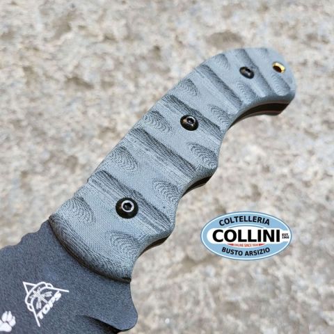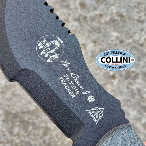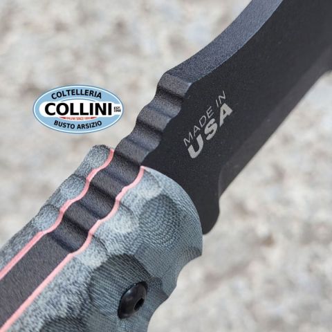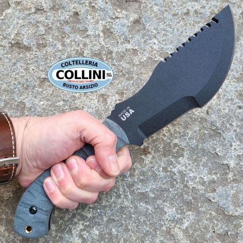 Destinazione d'uso: Tattico/Militare/SurvivalTipo di produzione: Made in USA, semi-artigianaleLama: in acciaio al carbonio 1095 58HRC - CamoManicatura: Micarta RMT (Rocky Mountain Tread)Lunghezza lama: 160mm.Spessore della lama: 6mm.Lunghezza totale: 302mm.Bilanciatura: in coincidenza del ramo di guardia inferiorePeso: 595g.Fodero: in kydex, con doppia metallica clip multiposizioneNote: Design by Tom Brown; utilizzato nel film del 2003 "The Hunted / La Preda" con Benicio Del Toro e Tommy Lee Jones