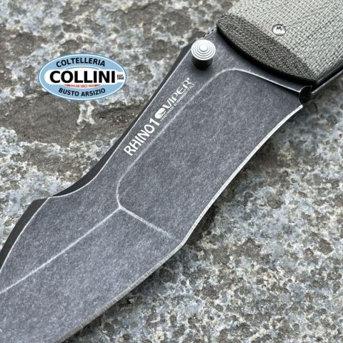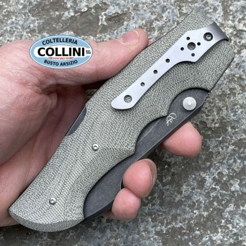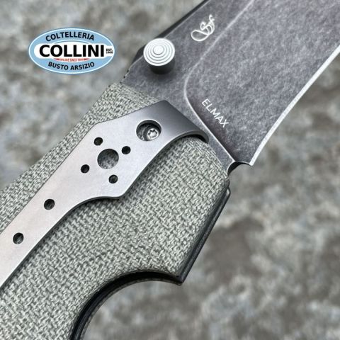 Destinazione d'uso: Sportivo Tipo di produzione: Industriale Produzione Lama: Italia Lama: in acciaio Uddeholm ELMAX SuperClean, HRC 59/61Trattamento Lama: Dark stone washedManicatura: Canvas micarta verdeLunghezza lama: 108mm. Spessore lama: 4.2mm. Lunghezza chiuso: 143mm. Lunghezza totale: 253mm. Spessore da chiuso: 19mm. Bilanciatura: - Peso: 250g. Chiusura: Back Lock con due molle a filo Clip:Acciaio AISI420 temperato con trattamento stonewashed Fodero: - Confezione: Scatola di cartone con loghi Viper Note: Design by Fabrizio "Sylvester" Silvestrelli