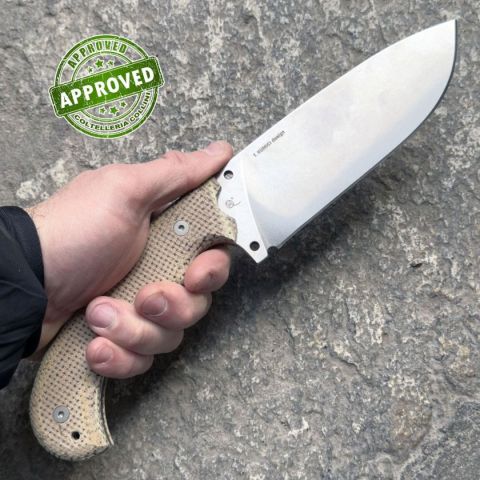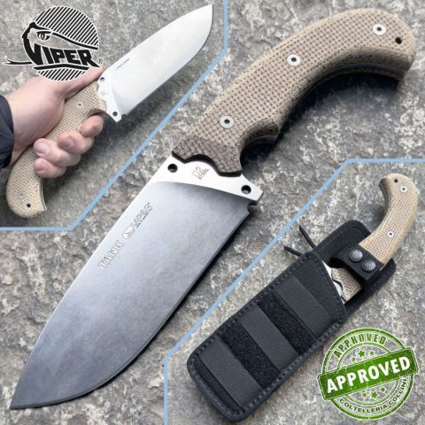 COLTELLO RITIRATO DA COLLEZIONE PRIVATA* Provenienza: Ritirato da un privato, precedentemente acquistato* Condizioni: Pari al nuovo* Reperibile in commercio: Fuori produzione* Affilatura: Originale* Segni su lama: Nessuno* Segni su impugnatura: Nessuno* Scatola: Assente* Fodero: Originale, pari al nuovo* Manuali, Certificati e Garanzie: -* Controllato e Certificato dal nostro laboratorio interno Il Viper Tank è un coltello a lama fissa progettato per offrire prestazioni eccezionali in situazioni tattiche e outdoor. Realizzato in Italia con materiali di alta qualità, questo coltello combina robustezza e funzionalità, risultando ideale per gli appassionati di attività all'aperto. La lama in acciaio D2 garantisce un'eccellente capacità di taglio, mentre il manico ergonomico in micarta assicura una presa salda e confortevole. Il fodero in Cordura compatibile con il sistema MO.L.L.E. completa l'equipaggiamento, permettendo un trasporto sicuro e pratico.