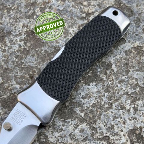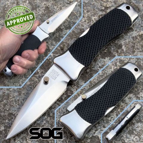 Il SOG Winder II Heavy Duty Folding Knife (modello SOG00009) rappresenta un esempio di alta qualità e precisione nella fabbricazione di coltelli. Con una lama di 8,8 cm di lunghezza e 4,7 mm di spessore, è perfetto per ogni tipo di attività, garantendo prestazioni eccellenti in taglio, affettatura e foratura. Il manico in Kraton nero testurizzato offre un'ottima presa, mentre la robusta meccanismo di blocco Lockback assicura sicurezza durante l'uso. Il coltello ha un design ambidestro, che lo rende facile da usare sia per mancini che per destri, e la sua compattezza (11,4 cm da chiuso) lo rende comodo da trasportare in tasca o nello zaino. Realizzato a Seki, Giappone, una città con una lunga tradizione nella fabbricazione di coltelli, il Winder II è sinonimo di alta qualità e artigianalità. Acquistato nel 1994 presso la nota catena di coltelleria Hoffritz di New York, è ormai fuori produzione, è un oggetto da collezione di grande valore storico. Questo coltello, proveniente da una coll