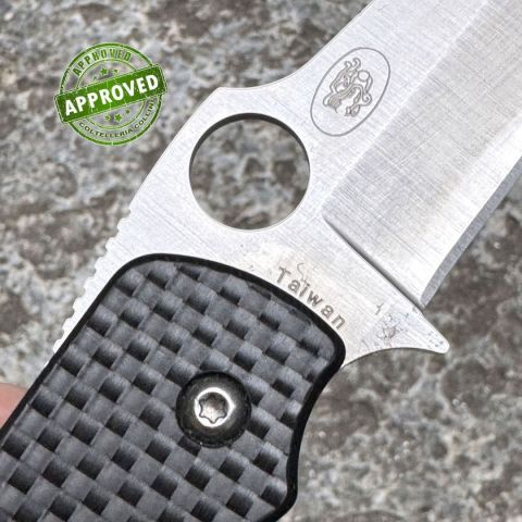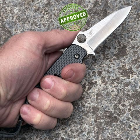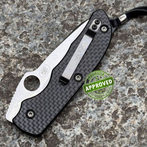 COLTELLO RITIRATO DA COLLEZIONE PRIVATA* Provenienza: Ritirato da un privato, precedentemente acquistato* Condizioni: Globalmente in ottime condizioni* Reperibile in commercio: NO* Affilatura: Di fabbrica* Segni su lama: Nessuno* Segni su impugnatura: Nessuno* Scatola: /* Fodero: /* Manuali, Certificati e Garanzie: /* Controllato e Certificato dal nostro laboratorio interno Il Spyderco Bob Terzuola Slipit C131 è un coltello pieghevole con lama non bloccante (Meccanismo Ball Joint) progettato dal rinomato maestro coltellinaio Bob Terzuola. Questo modello combina l'eleganza del design con funzionalità avanzate, rendendolo ideale sia per collezionisti che per appassionati di coltelli. Destinazione d'uso: Sportivo / EDCTipo di produzione: IndustrialeProduzione Lama: TaiwanLama: In acciaio inox CPM-S30VTrattamento Lama: -Manicatura: Fibra di CarbonioLunghezza lama: 75mm.Spessore lama: 2.5mm.Lunghezza chiuso: 100mm.Lunghezza totale: 175mm.Spe