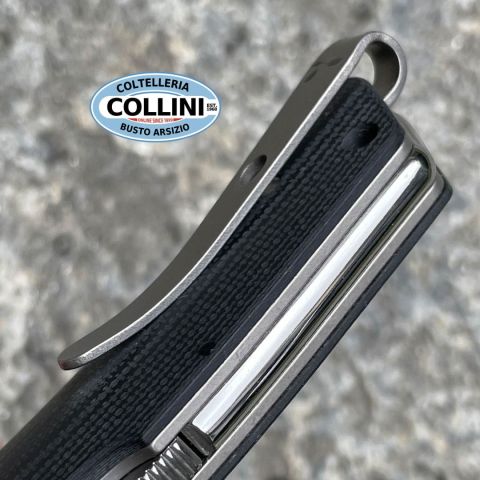 Destinazione d'uso: Sportivo/EDC Tipo di produzione: Industriale Paese di produzione: Maniago - Italia Lama: in acciaio inox M390 60/61HRC Trattamento lama: Satinatura Impugnatura: in titanio con guancette in G10 Nero Lunghezza lama: 80mm. Spessore lama: 4mm. Lunghezza chiuso: 107mm. Lunghezza totale: 190mm. Spessore da chiuso: 14mm.Peso: 123g.Chiusura: Back Lock Clip: in titanio Fodero: in cuoio Confezione: Scatola di cartone con loghi Viper Knives Note: Design by Fabrizio Silvestrelli