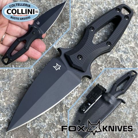 Destinazione d'uso: TatticoTipo di produzione: IndustrialePaese di produzione: ItaliaLama: full tang, in acciaio inox Elmax 60/62 HRCTrattamento lama: Black Top ShieldImpugnatura: G-10Lunghezza lama: 60mm.Spessore lama: 3mm.Lunghezza totale: 140mm.Peso: 60g.Fodero: in Kydex, con attacco Ulti-ClipConfezione: scatola in cartone con loghi FoxNote: Design by Denis Simonutti