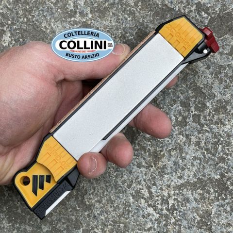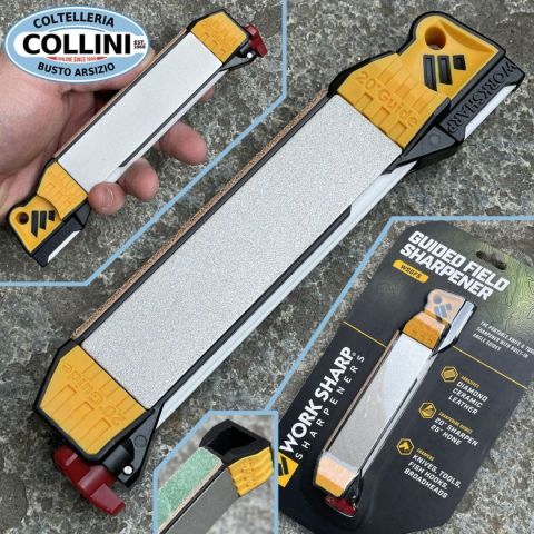 L'affilatore da campo guidato è una soluzione completa per l'affilatura sul campo o a casa propriaProgettato esclusivamente per gli sportivi e gli utilizzatori di coltelli che necessitano di una soluzione di affilatura manuale completa, robusta e compatta. Incorpora 5 fasi di affilatura e levigatura, ciascuna con guide angolari incorporate per ottenere un'affilatura uniforme su tutta la lama. Le guide a 20°, il diamante con grana 320 e 600, le bacchette in ceramica fine e lo stropping in cuoio a 25° si combinano per fornire un'unica soluzione, dalla riparazione alla creazione di un coltello ben affilato e lucidato. Il Guided Field Sharpener affila anche seghettature ed ami da pesca e le piastre diamantate rimovibili, fissate magneticamente, rivelano una cavità per riporre ulteriori utensili a voi utili. - Struttura in robusto materiale plastico con inserti in gomma antiscivolo- Pietra diamantata grossa con grana #320 ed angolo guidato di 20°- Pietra diamantata fine con grana #600 ed an