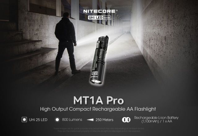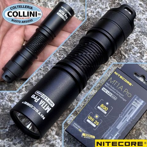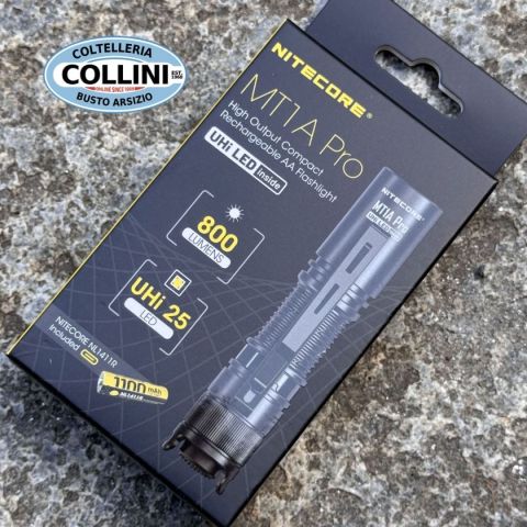 La NITECORE MT1A Pro è una torcia compatta e leggera con un potente LED UHi 25 che emette 800 lumen fino a 250 metri. Funziona con una batteria ricaricabile 14500 o una AA, e ha un design resistente grazie all'alluminio aeronautico con finitura militare HA III. È impermeabile (IP68), resistente agli urti fino a 2 metri e ha una lente ottica antigraffio. Ha un interruttore posteriore per un facile utilizzo, un circuito a corrente costante, e una funzione di memoria del livello di luminosità. Led: UHi 25 LED con un ciclo vitale di 50.000 oreModi Operativi: 3 potenze luminosePotenze e Durate con batteria NL1411R: 800 Lumens (1h.) -> 300 Lumens (1.45h.) -> 50 Lumens (10h.)Potenze e Durate con 1 batteria A: 200 Lumens (1.30h.) -> 50 Lumens (5h.)Picco di potenza: 15700 candeleDistanza di illuminazione massima: 250m.Metodo di accensione e selezione luminosa: Pulsante posteriore in gomma:Testa: alluminio aeronauticoCorpo: alluminio aeronauticoFinitura: anodizzata, Type IIILente: